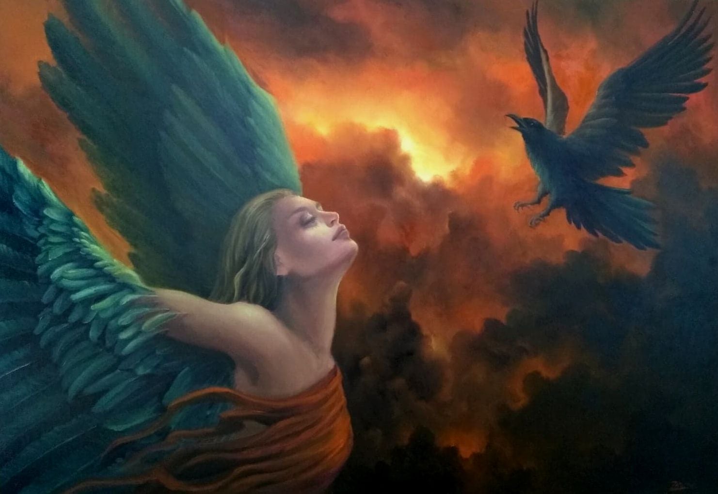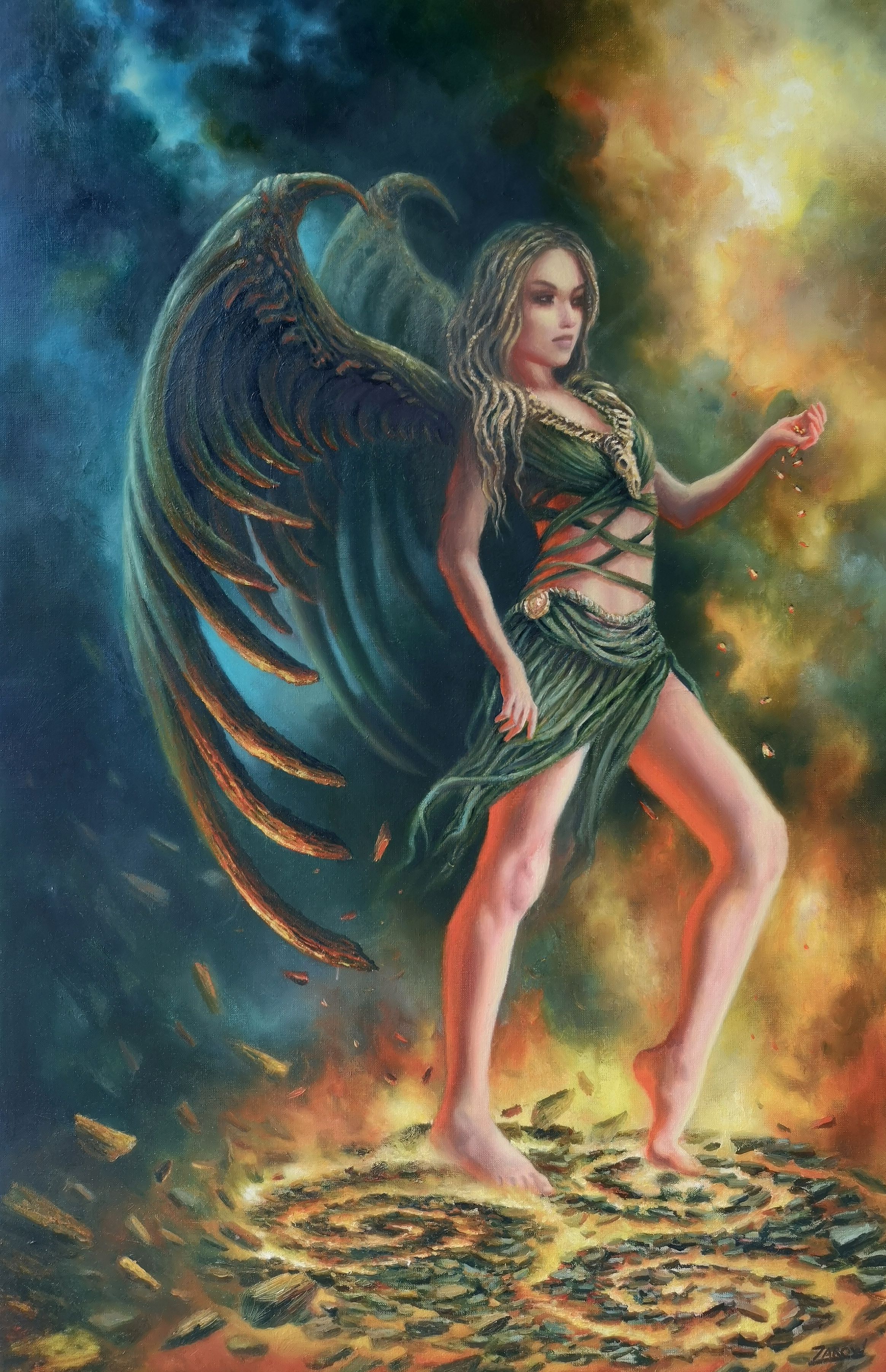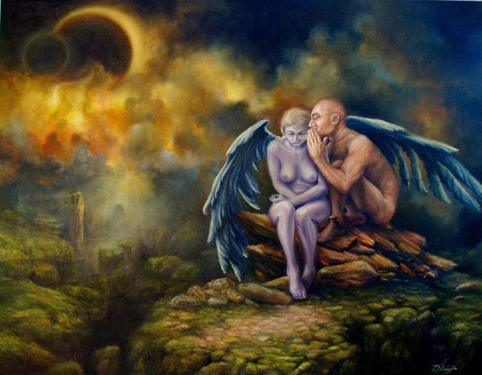 Kuszenie anioła - oil painting, 70x90 cm, 2017 r.