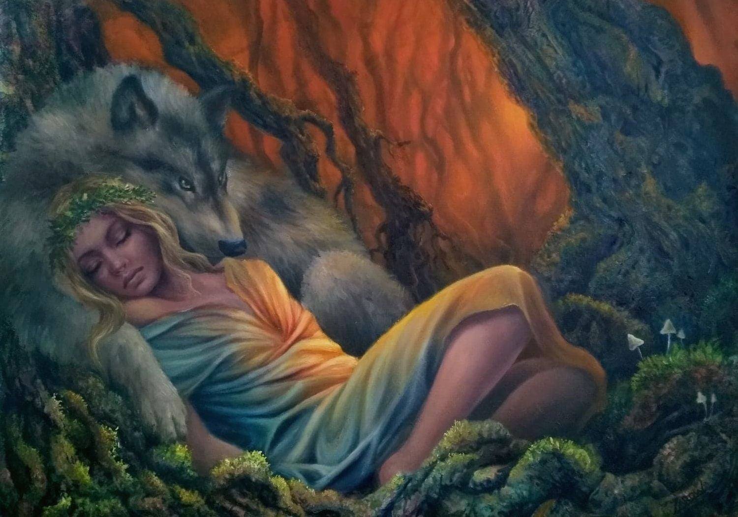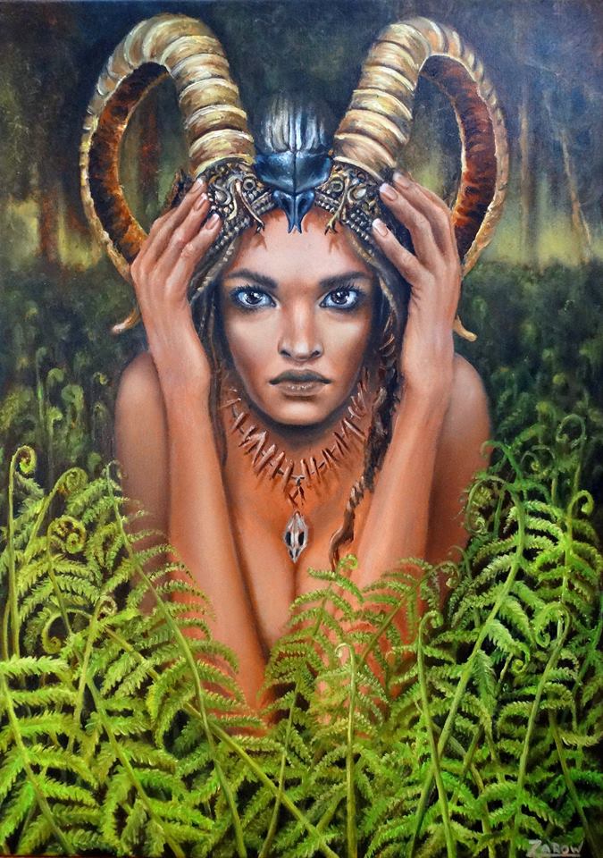 Dziewanna - oil painting, 40x40 cm, 2019 r.